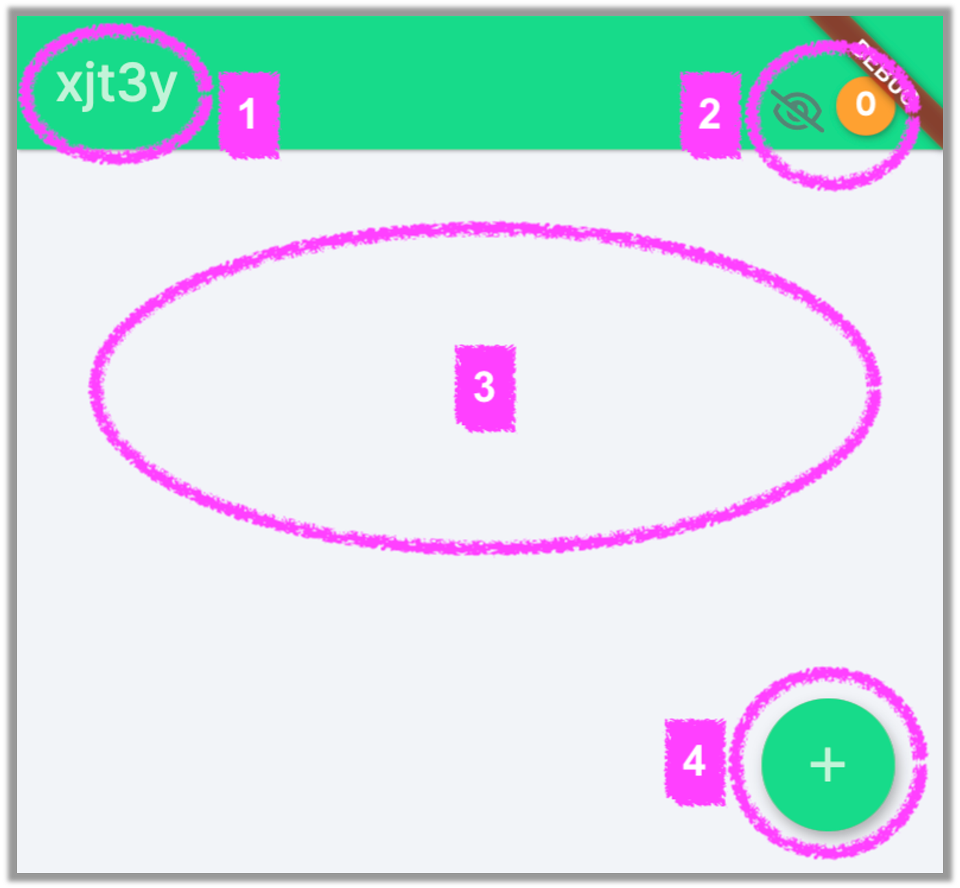 मार्गदर्शिका के बनाए जाने के बाद से ऐप अपडेट किया गया हो। उदाहरण के लिए, ऊपरी दाएं कोने में डीबग लेबल किसी की स्क्रीन