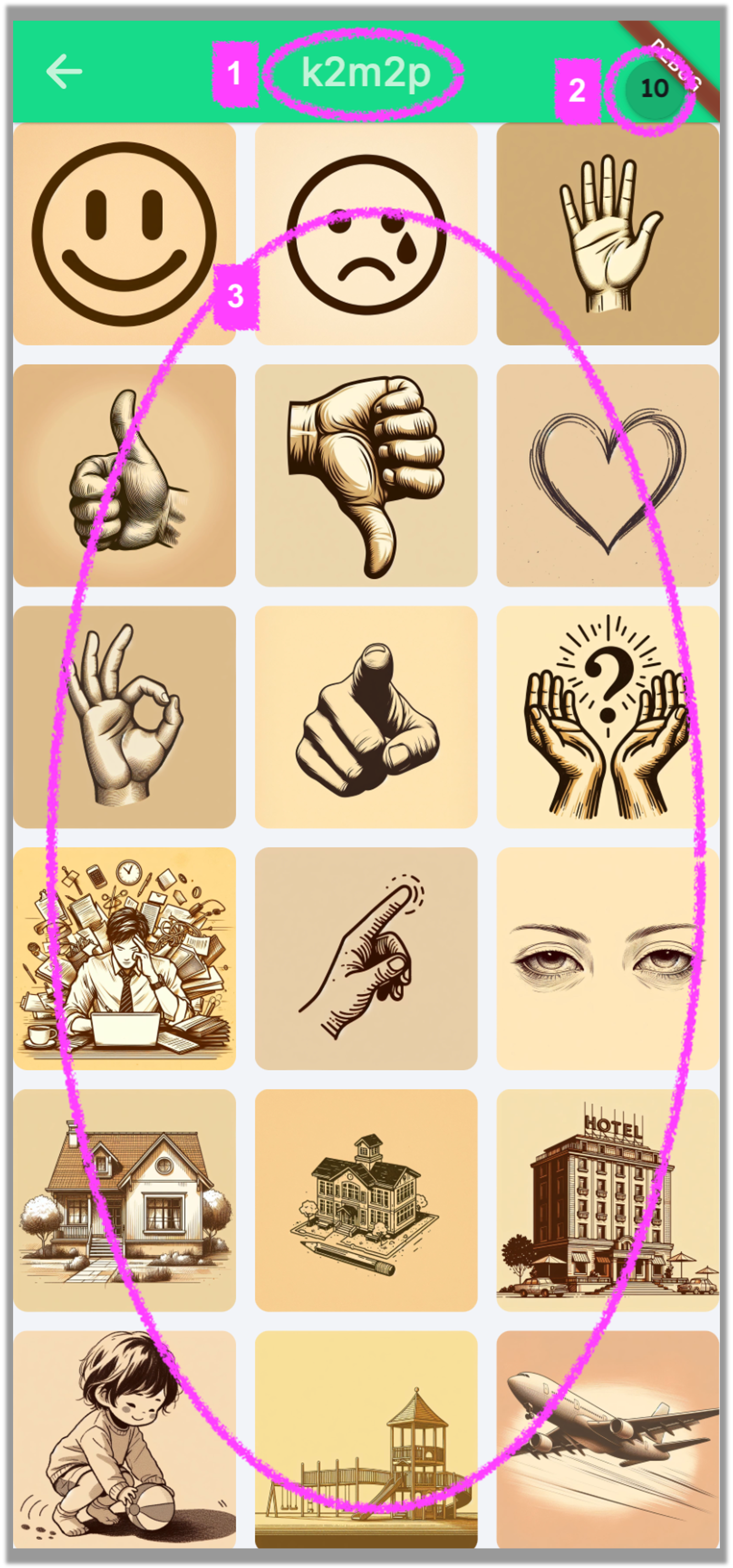 यह बिना शब्दों का उपयोग किए एक चैट मैसेजिंग ऐप है। संदेश बनाने के लिए छवियों के चयन से भेजें। यह छोटे बच्चों के लिए है जो अच्छी तरह से पढ़ या लिख नहीं सकते हैं (या बिल्कुल भी) फिर भी अपने माता-पिता या भाई-बहनों के साथ संदेश भेजना और प्राप्त करना चाहते हैं।